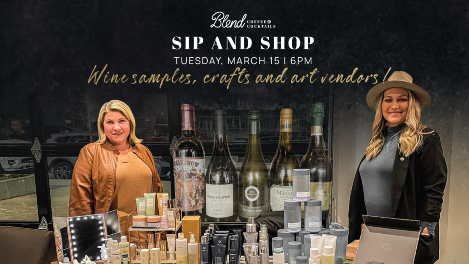 Sip and Shop Tuesday, March 15 | 6:00 PM Join us for a fun night out, featuring wine samples, crafts and art vendors and more on site! Join Us for Coffee and Cocktails Visit Us